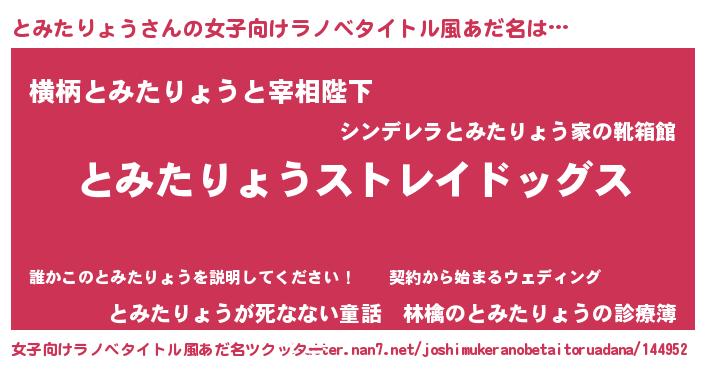 男性向けラノベタイトル風あだ名 | 『Re:とみたりょうから始める異世界生活』 |