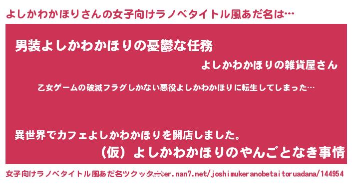 | 男性向けラノベタイトル風あだ名 | 『この素晴らしい世界によしかわかほりを!』 |