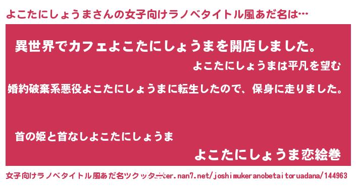 | 男性向けラノベタイトル風あだ名 | 『ヨコタニショウマスレイヤー』 |