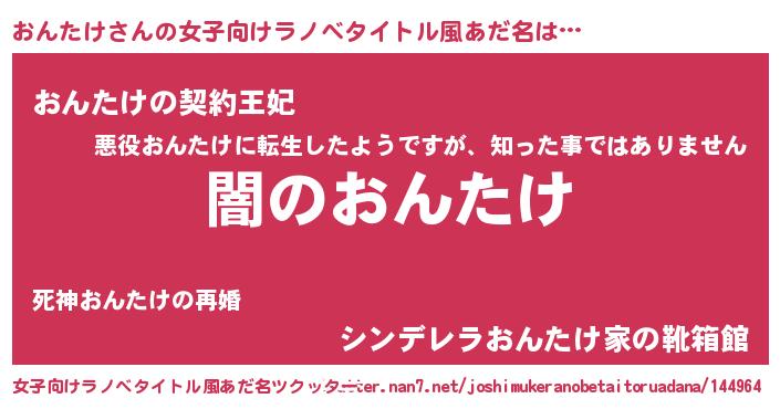 | 男性向けラノベタイトル風あだ名 | 『Re:おんたけから始める異世界生活』 |