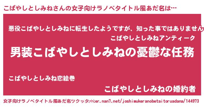 | 胡散臭い通販商品みたいなあだ名 | 『あなたにだけ特別に提供する100年もののヴィンテージワイン…その名も「こばやしとしみね」』 |