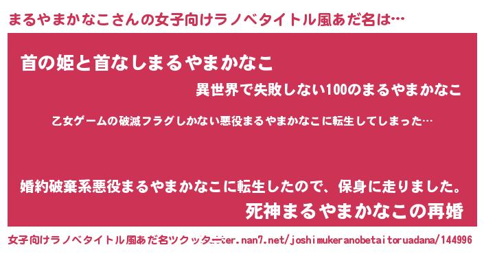 | 男性向けラノベタイトル風あだ名 | 『この素晴らしい世界にまるやまかなこを!』 |