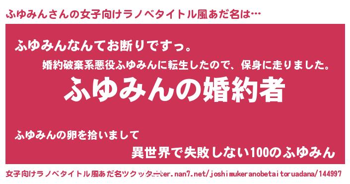 | 胡散臭い通販商品みたいなあだ名 | 『運命の人と巡り会える高級そうな絵画…その名も「ふゆみん」』 |