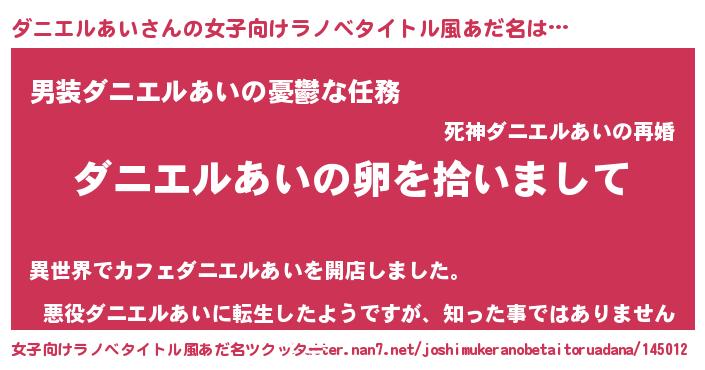 | 男性向けラノベタイトル風あだ名 | 『ダンジョンにダニエルあいを求めるのは間違っているだろうか』 |