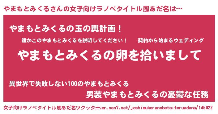 | 欧米人風あだ名 | 『ウサインやまもとみくる』 |