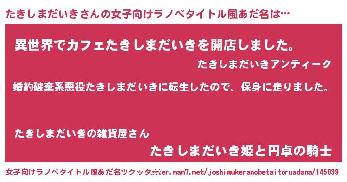 | 胡散臭い通販商品みたいなあだ名 | 『絶対に幸福をもたらす健康食品…その名も「たきしまだいき」』 |