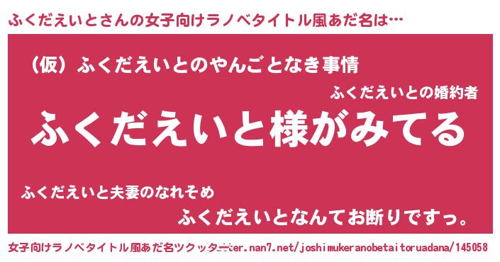 | 男性向けラノベタイトル風あだ名 | 『ふくだえいとの嫁は女の子じゃないと思った?』 |