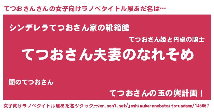 | 男性向けラノベタイトル風あだ名 | 『おまえをオタクにしてやるから、俺をてつおさんにしてくれ! 』 |