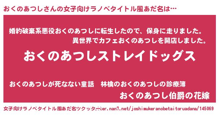 | 意味不明あだ名 | 『自称おくのあつし』 |