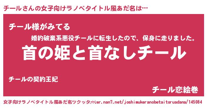 | 料理風あだ名 | 『栗とチールのマフィン』『チールごはん』 |