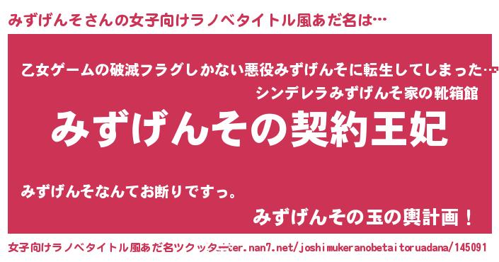 | 意味不明あだ名 | 『永久保存みずげんそ』『自称みずげんそ』 |