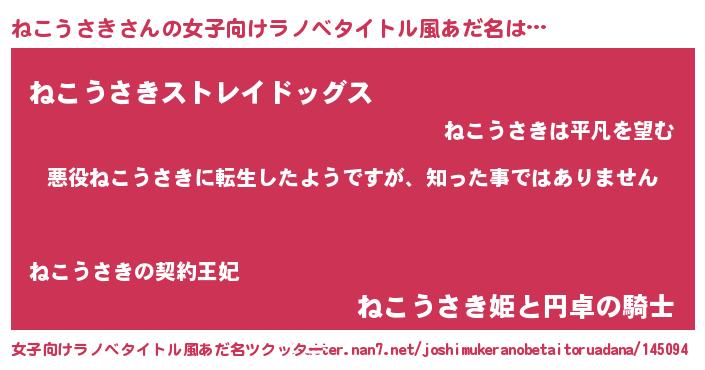 | 意味不明あだ名 | 『住所不定無職ねこうさき(81歳)』 |