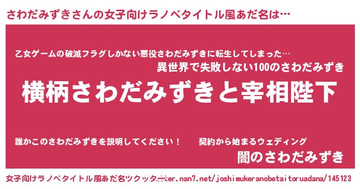 | 意味不明あだ名 | 『住所不定無職さわだみずき(11歳)』 |