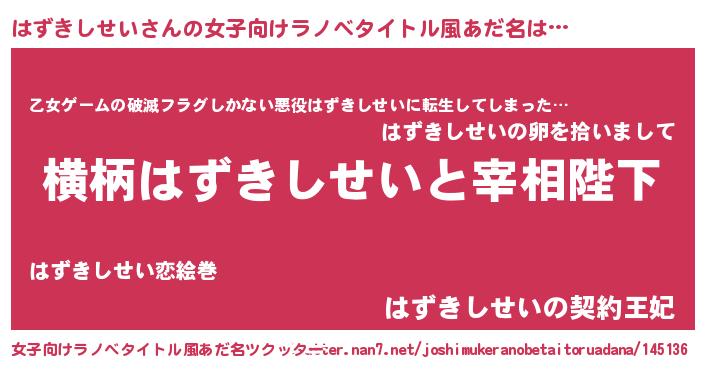 | 男性向けラノベタイトル風あだ名 | 『はずきしせいに滅ぼされるだけの簡単なお仕事です』 |