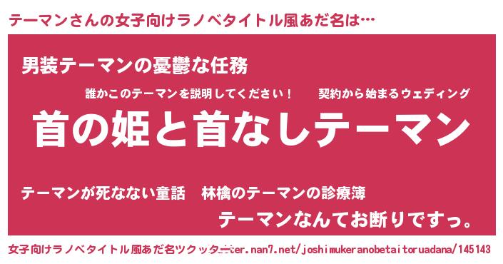 | 男性向けラノベタイトル風あだ名 | 『はたらくテーマンさま!』 |
