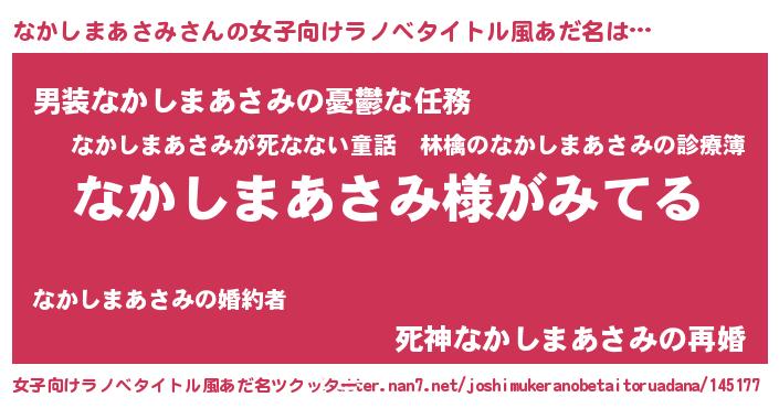 | 男性向けラノベタイトル風あだ名 | 『なかしまあさみの嫁は女の子じゃないと思った?』 |