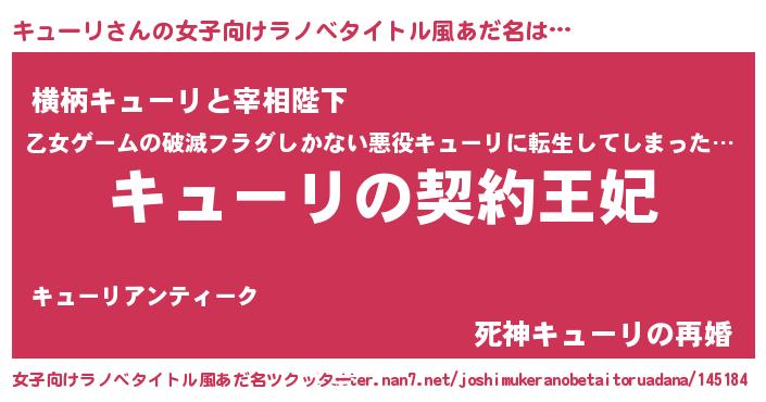 | 男性向けラノベタイトル風あだ名 | 『キューリという概念が存在しない退屈な世界 』 |
