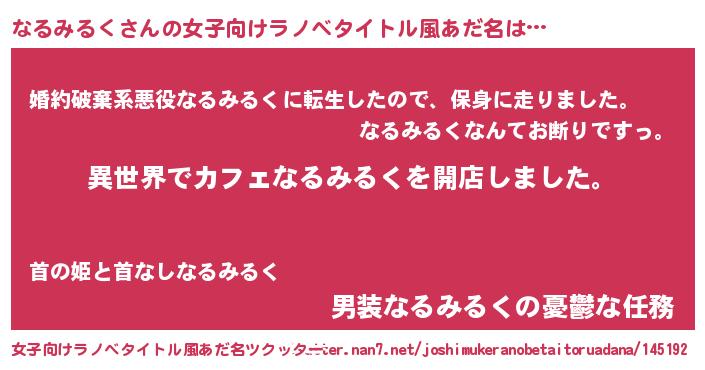 | ヒーロー風カッコイイあだ名 | 『ネオナルミルク』『幻影騎士ナル』 |