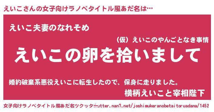 | 男性向けラノベタイトル風あだ名 | 『ダンジョンにえいこを求めるのは間違っているだろうか』 |