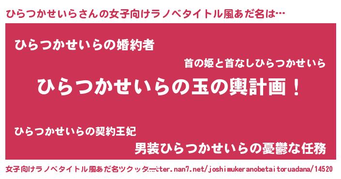| 男性向けラノベタイトル風あだ名 | 『転生したらひらつかせいらだった件』 |