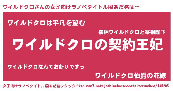 | ヘコむあだ名 | 『ワイルドクロ(苦笑)』『ワイっ子』 |