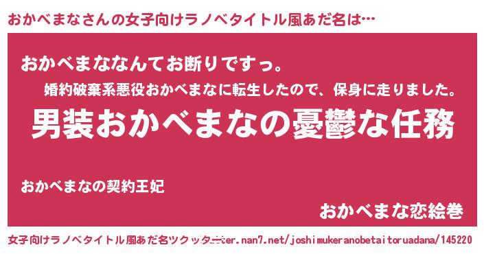 | 男性向けラノベタイトル風あだ名 | 『うちのおかべまなが世界を掌握している!』 |