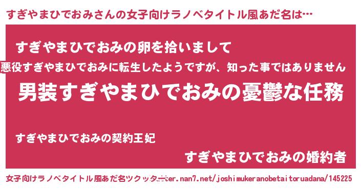 | ヘコむあだ名 | 『すぎ太郎』『豆乳』『すぎにー』 |