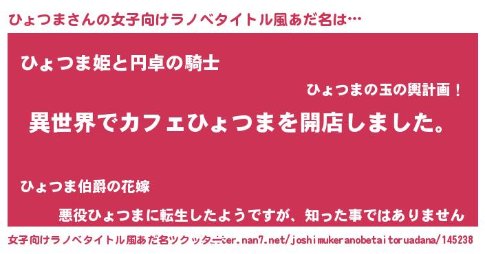 | 男性向けラノベタイトル風あだ名 | 『誰もが恐れるあのひょつまが、ぼくの専属メイドになるようです。』 |