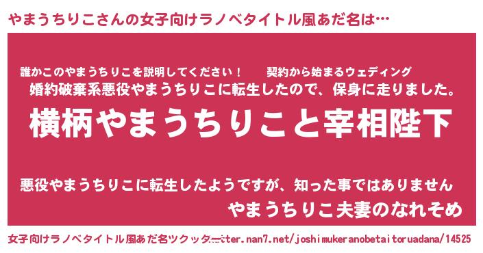 | 男性向けラノベタイトル風あだ名 | 『やまうちりこに滅ぼされるだけの簡単なお仕事です』 |