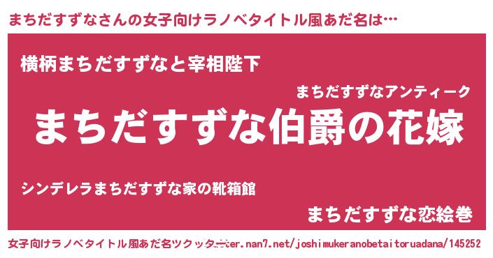 | 男性向けラノベタイトル風あだ名 | 『やはりまちだすずなの青春ラブコメはまちがっている 』 |