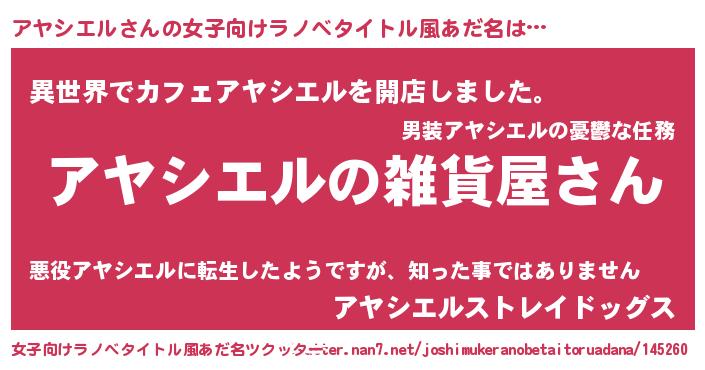 | ファンタジー風あだ名 | 『エターナルアヤシエルー』『ゼアヤトゥ』 |