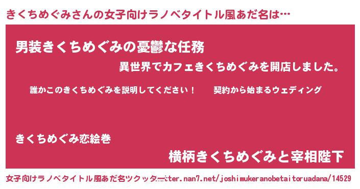 | 男性向けラノベタイトル風あだ名 | 『キクチメグミアートオンライン』 |