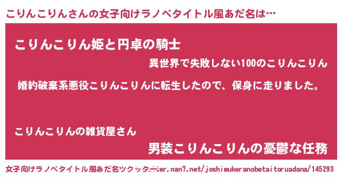 | 胡散臭い通販商品みたいなあだ名 | 『必ず成功する霊験あらたかなお札…その名も「こりんこりん」』 |
