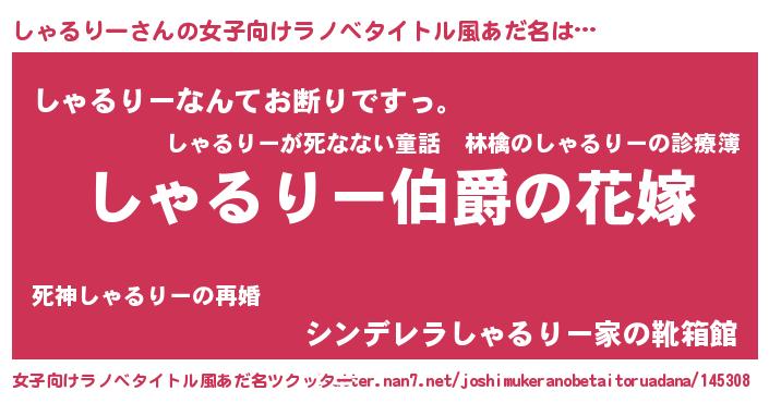 | ファンタジー風あだ名 | 『エターナルシャルリーー』『ゼシャトゥ』 |