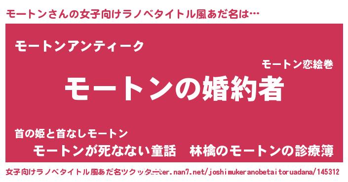 | 胡散臭い通販商品みたいなあだ名 | 『運命の人と巡り会える高級そうな壺…その名も「モートン」』 |