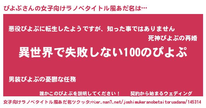 | 胡散臭い通販商品みたいなあだ名 | 『絶対に幸福をもたらす健康食品…その名も「ぴよぷ」』 |