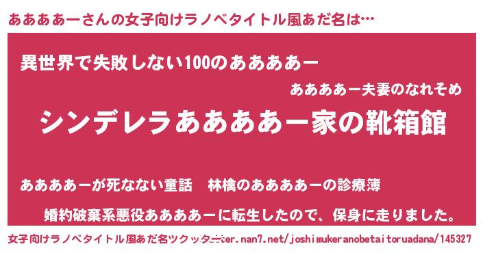 | 胡散臭い通販商品みたいなあだ名 | 『絶対に幸福をもたらす健康食品…その名も「ああああー」』 |