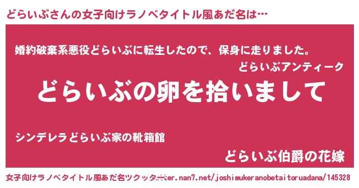 | ヒーロー風カッコイイあだ名 | 『幻影騎士ドラ』『ウルトラどらいぶマン』 |
