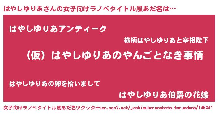| 胡散臭い通販商品みたいなあだ名 | 『必ず成功する霊験あらたかなお札…その名も「はやしゆりあ」』 |