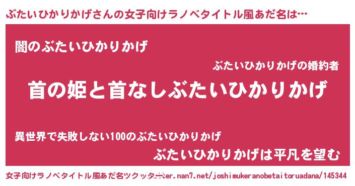 | 意味不明あだ名 | 『自称ぶたいひかりかげ』 |
