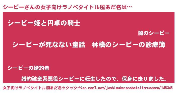 | 胡散臭い通販商品みたいなあだ名 | 『ハリウッド女優が絶賛した世界で10本だけ現存している希少なブランデー…その名も「シービー」』 |