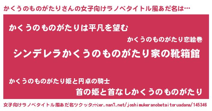 | 意味不明あだ名 | 『とにかく怪しいかくうのものがたり』 |