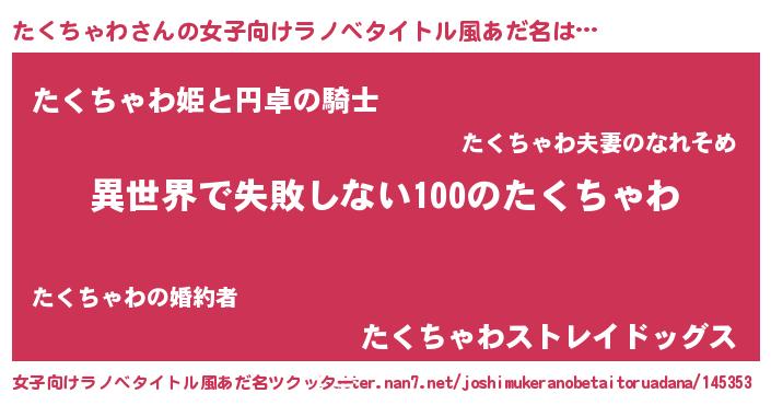 | 意味不明あだ名 | 『永久保存たくちゃわ』『自称たくちゃわ』 |
