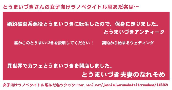 | 男性向けラノベタイトル風あだ名 | 『トウマイヅキアートオンライン』 |