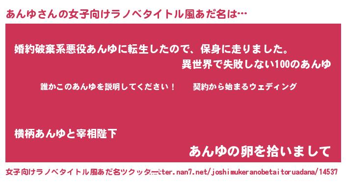 | 胡散臭い通販商品みたいなあだ名 | 『億万長者になれる霊験あらたかなお札…その名も「あんゆ」』 |