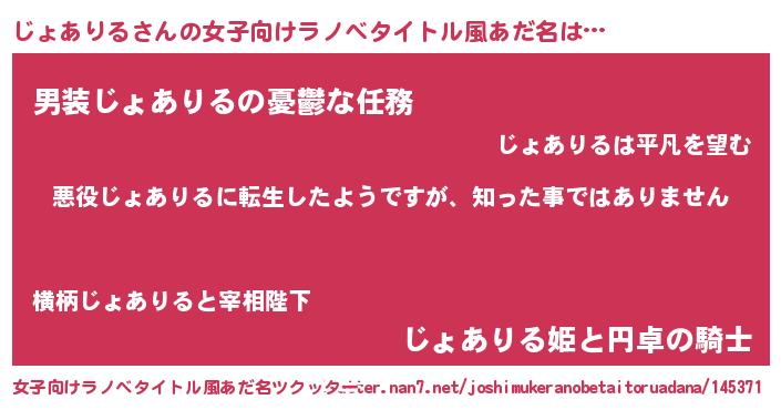 | 男性向けラノベタイトル風あだ名 | 『この素晴らしい世界にじょありるを!』 |