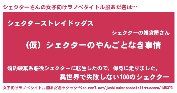 | 男性向けラノベタイトル風あだ名 | 『シェクターの憂鬱』 |