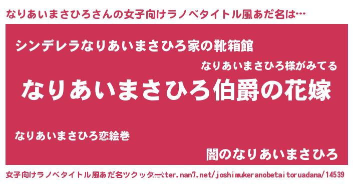 | 男性向けラノベタイトル風あだ名 | 『やはりなりあいまさひろの青春ラブコメはまちがっている 』 |