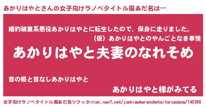 | 胡散臭い通販商品みたいなあだ名 | 『100人中100人が認めたイリジウム磁石…その名も「あかりはやと」』 |