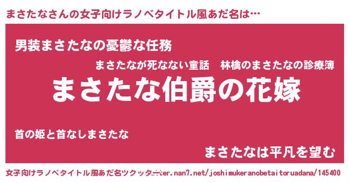 | 意味不明あだ名 | 『まさたなフォーエバー』 |
